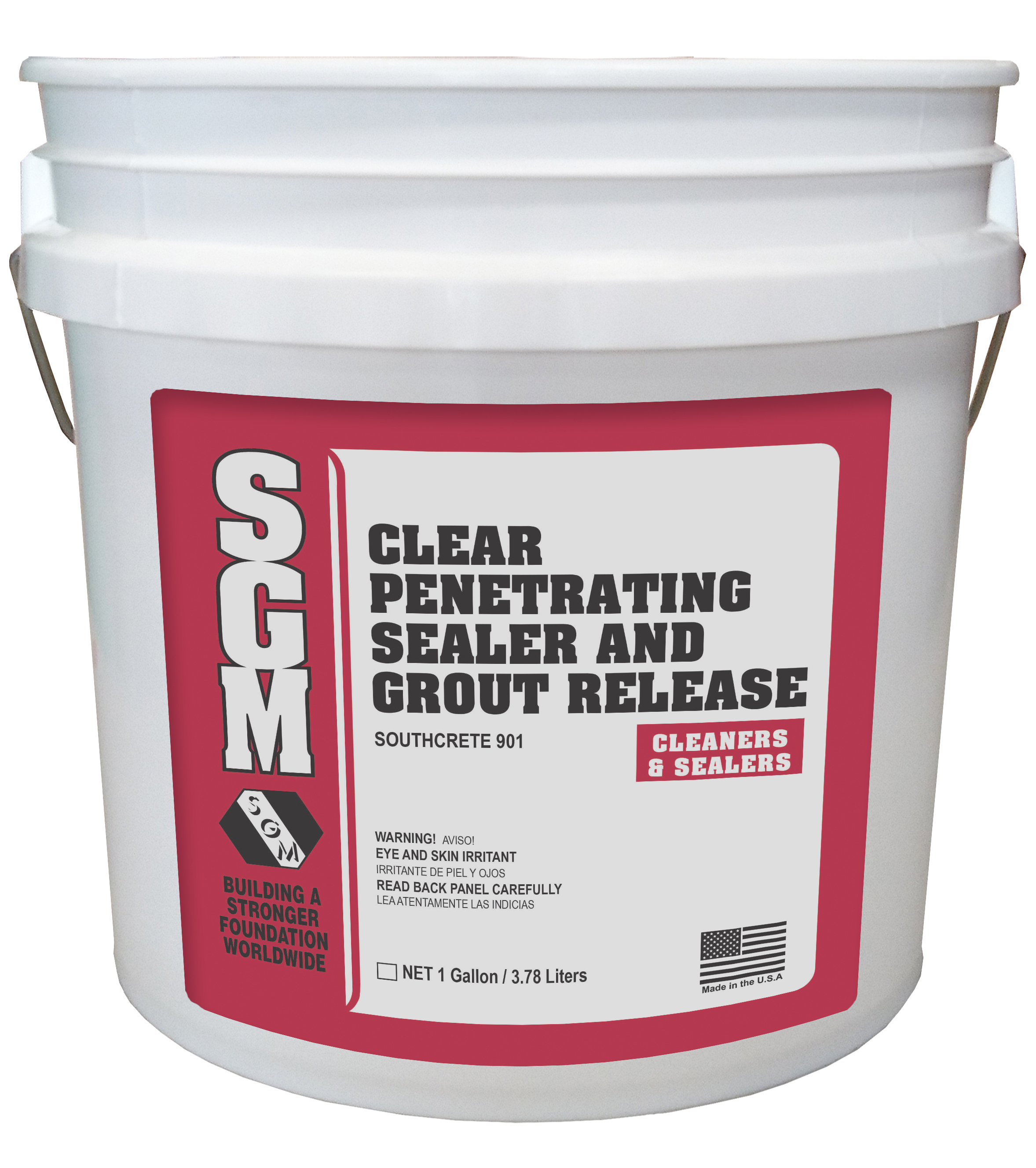 Southcrete™ Clear Penetrating Sealer and Grout Release (901) is a non-flammable, invisible, stain-resistant, water-based sealer. Designed for use over unsealed brick pavers, concrete, Mexican-clay, and any other unglazed surfaces when a natural look is desired. Southcrete Clear Penetrating Sealer and Grout release allows for moisture vapor transmission. Southcrete Clear Penetrating Sealer and Grout Release is great for use on marble, travertine, granite, slate, terracotta, limestone, flagstone, brick, Saltillo, grout, and masonry surfaces. Southcrete Clear Penetrating Sealer and Grout Release can be used for interiors and exteriors.