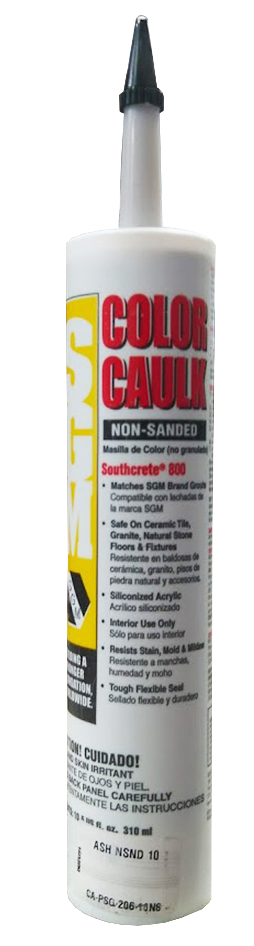 (Sanded — Non-Sanded)SGM Color Caulk is a premium quality sealant that provides a long-lasting water-resistant seal. Formulated with siliconized acrylic, this product is designed to provide a flexible, mildew-resistant, stain-resistant, and crack-resistant high adhesion product. Our Color Caulk can be used for caulking around ceramic tiles, marble, granite, and natural stone floors and fixtures. Furthermore, it’s a great fit for countertops, showers, tubs, and sinks to restore cracked or worn grout lines. Color Caulk is color-matched to all SGM sanded and non-sanded grout colors.