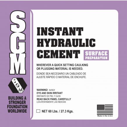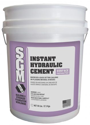 SGM Instant Hydraulic Cement is a mixture of Portland cement and special additives that permits underwater patching and general concrete repair work to be done instantly. It can be used wherever a quick setting caulking or plugging material is needed.