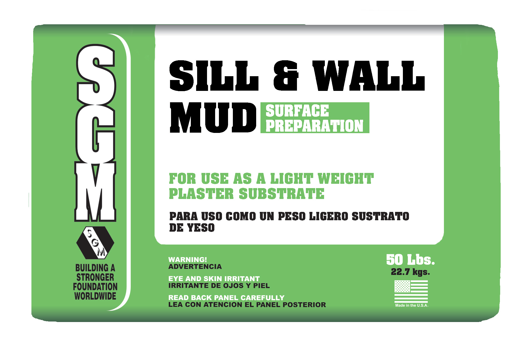 SGM Sill and Wall Mud (821) is a mud / light-weight plaster substrate, factory blended, and consisting of Portland Cement, sand, and lightweight fillers. This product is designed for use as a lightweight plaster substrate bedding (brown coat), which does not place an additional load on structural members. Sill and Wall Mud 821 eliminates costly job-site mixing of sand and cement mixes.