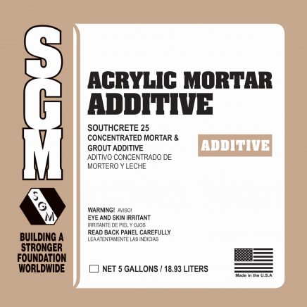 - 1-½ gallon Southcrete 25 acrylic mortar additive to 1 bag (50 lbs / 22.7 kgs) SGM Sanded Thin Set.