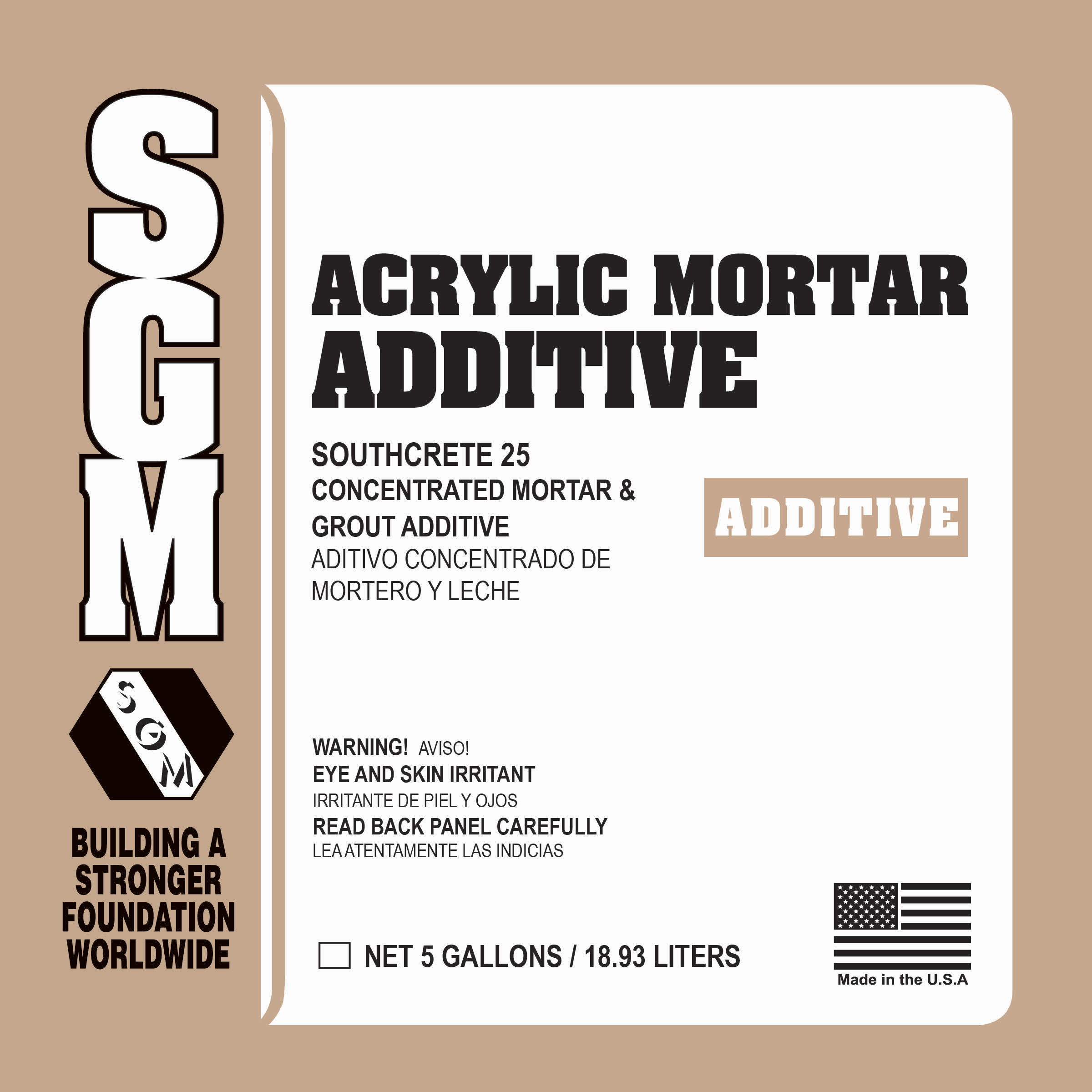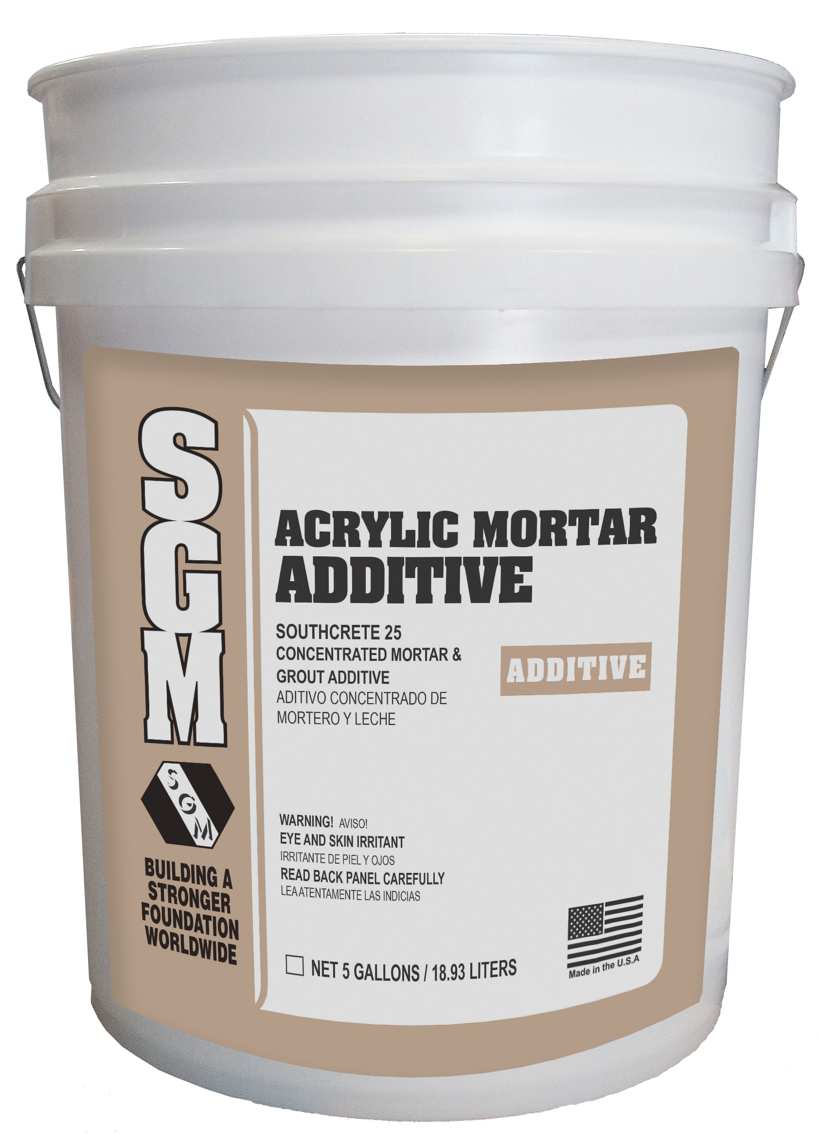 - 2-½ gallons Southcrete 25 Acrylic Mortar Additive to 80 lbs. SGM Floor Mud; or