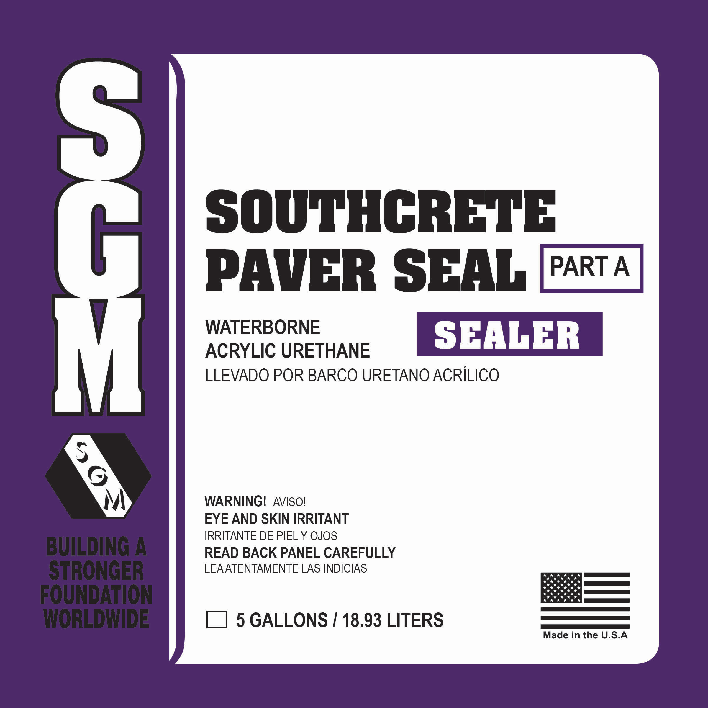 Southcrete™ Paver Seale Two-Part Waterborne Acrylic Urethane SealerSouthcrete™ Two-Part Paver Seal is a waterborne acrylic urethane and is a high-performance clear sealer and finish that delivers unparalleled protection for pavers, decorative concrete, floors, walkways, and other painted surfaces. The hard, crystal clear film will withstand heavy use from vehicles and commercial traffic. Additionally, our Two-Part Southcrete Paver Seal is resistant to most solvents and chemicals. When you choose the Southcrete™ Two-Part Paver Seal from SGM, you’ll provide protection while enhancing the color of pavers and decorative concrete with a product that will not yellow. Ideal for interior and exterior use.